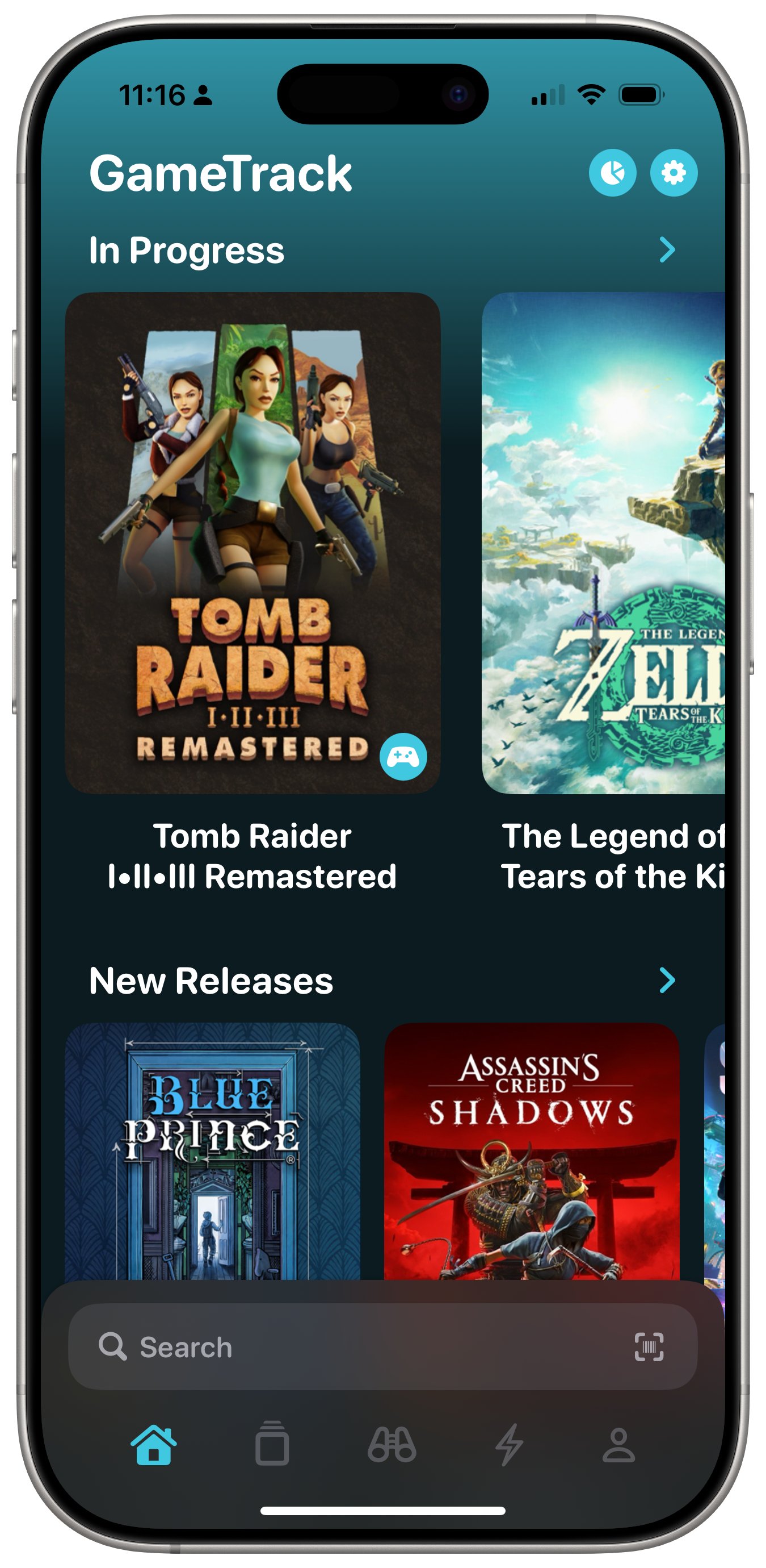 I created a more unified design system for Joe Kimberlin’s GameTrack, and shared my implementation of a combined Search and Tab Bar to allow for quick navigation throughout the app.