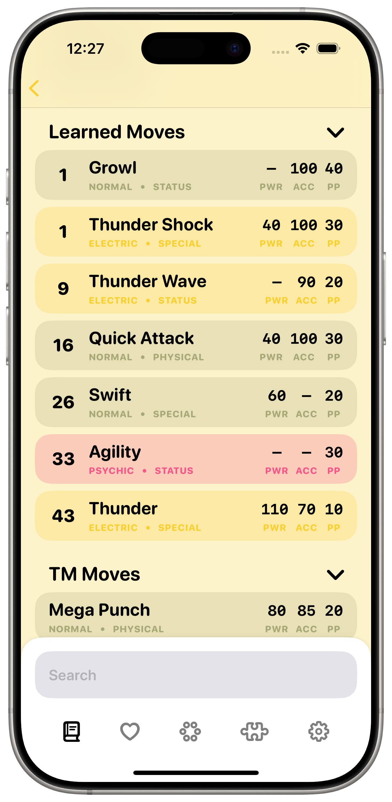 This app is not affiliated or endorsed by Nintendo, GameFreak or The Pokémon company in anyway. Pokémon, the character names, and information are trademarks of Nintendo. No copyright infringement is intended, this app is a fair-use reference for their works.