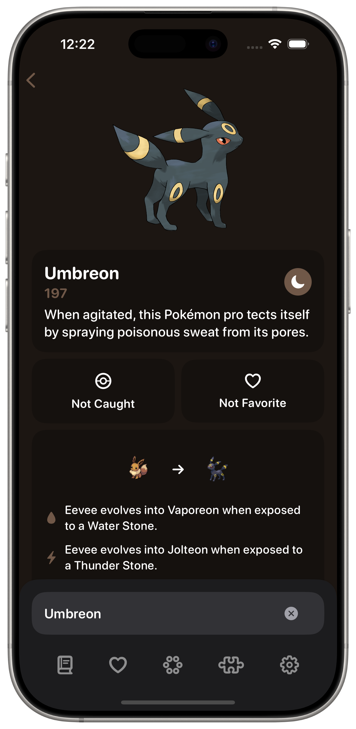 Ketchup is full featured Pokédex app that will help you become a true Pokémon master. It’s fast and easy to browse or search for all the information you could ask for, whether you’re just brushing up or you’re in the heat of battle and need to know the right move, right now. You can track what creatures you’ve captured, including whether or not you’ve caught their rare shiny variants. It includes a type calculator, helping you get the edge in battle.