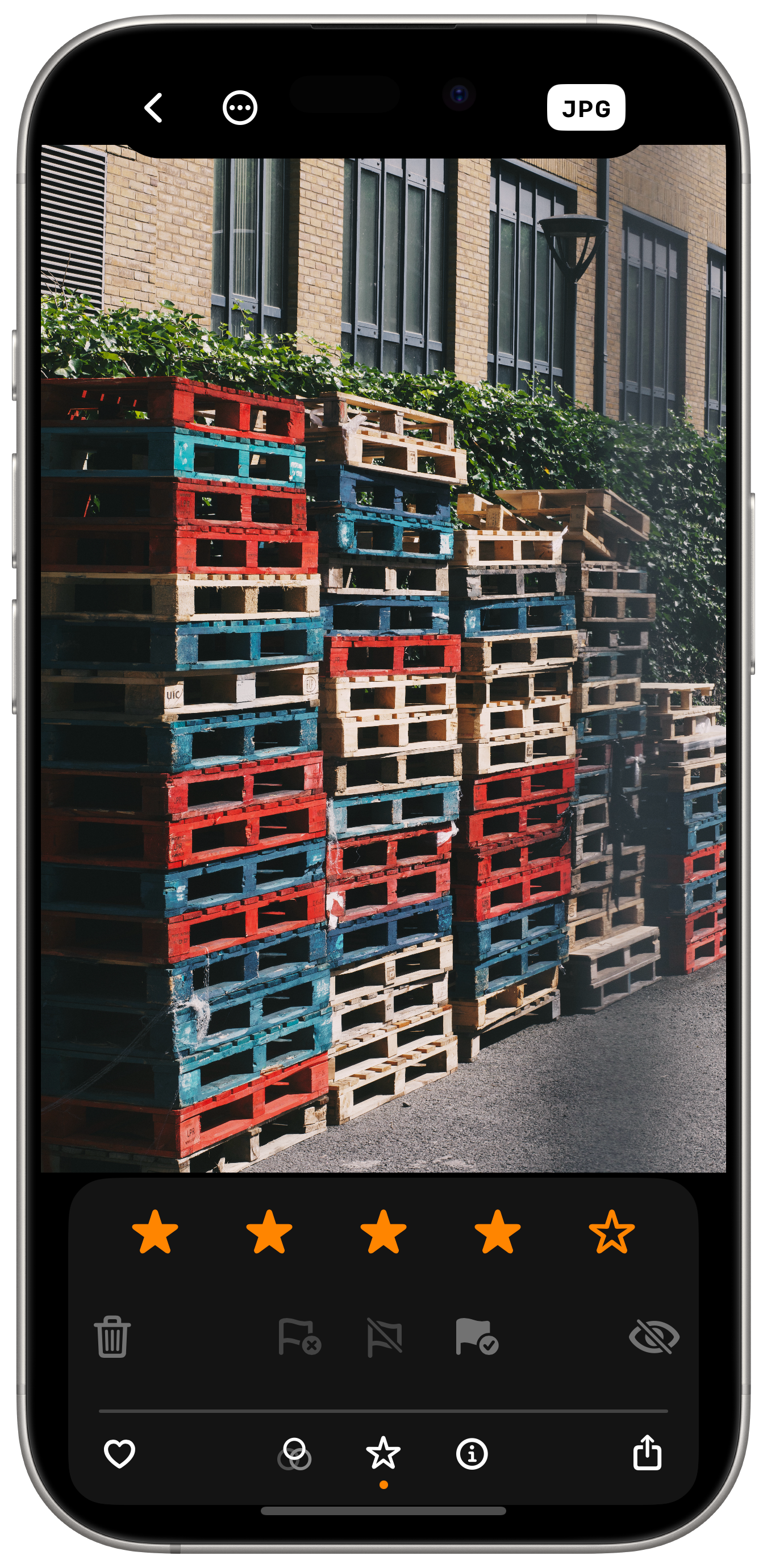 Obscura is fully integrated with the system library so you can browse, rate, and edit your photos.